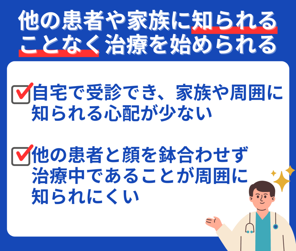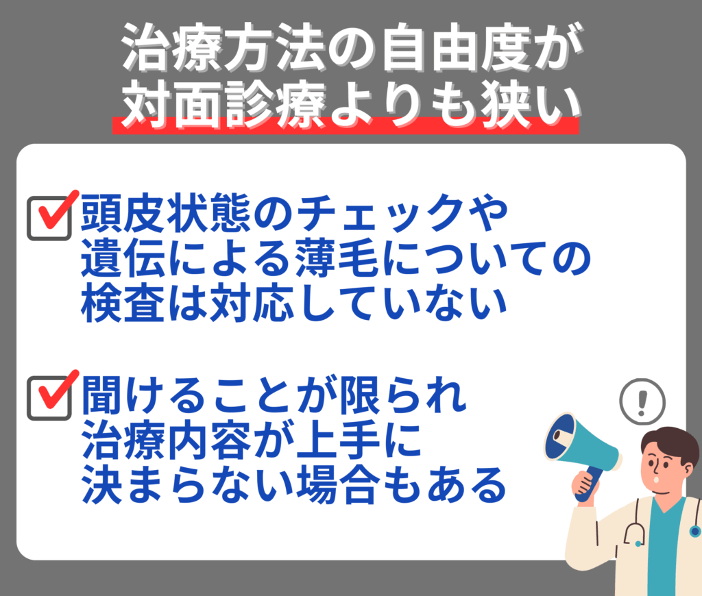 診療できる内容は限られているものの、AGA治療にはしっかり対応しているので、安心して診察を受けられます。