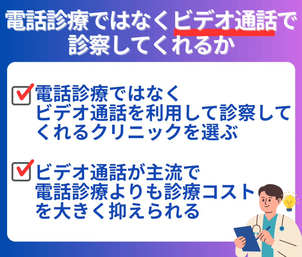 ビデオ通話の方が最近は一般的な手法となっていますので、医師の顔を見ながら診察を受けられるのは便利です。