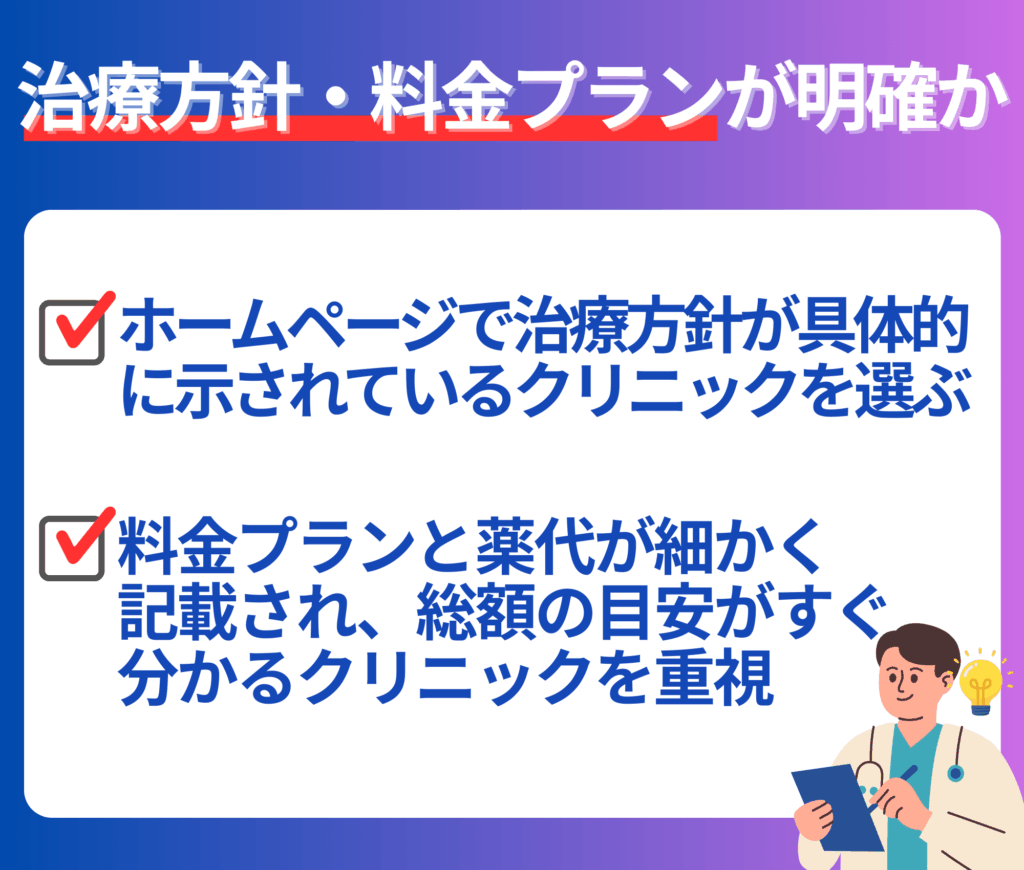 治療方針や料金プランが明確になっているクリニックを選んでください。