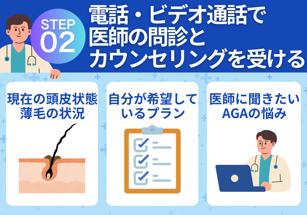 【STEP2】電話・ビデオ通話で医師の問診とカウンセリングを受ける