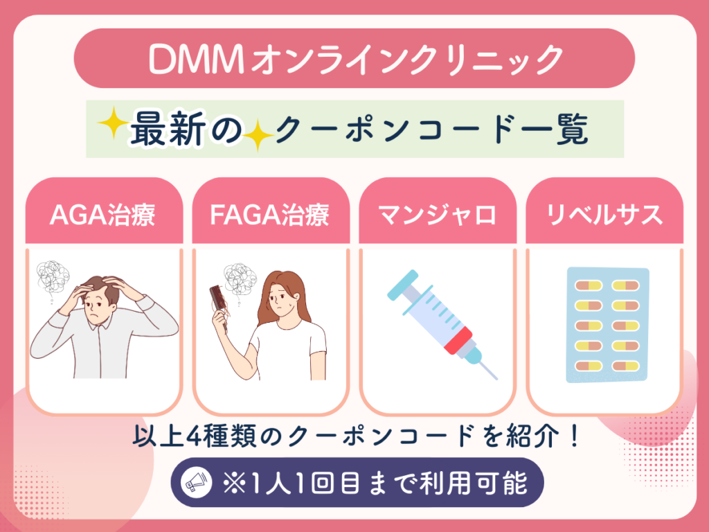 - DMMオンラインクリニックで使えるクーポンコード