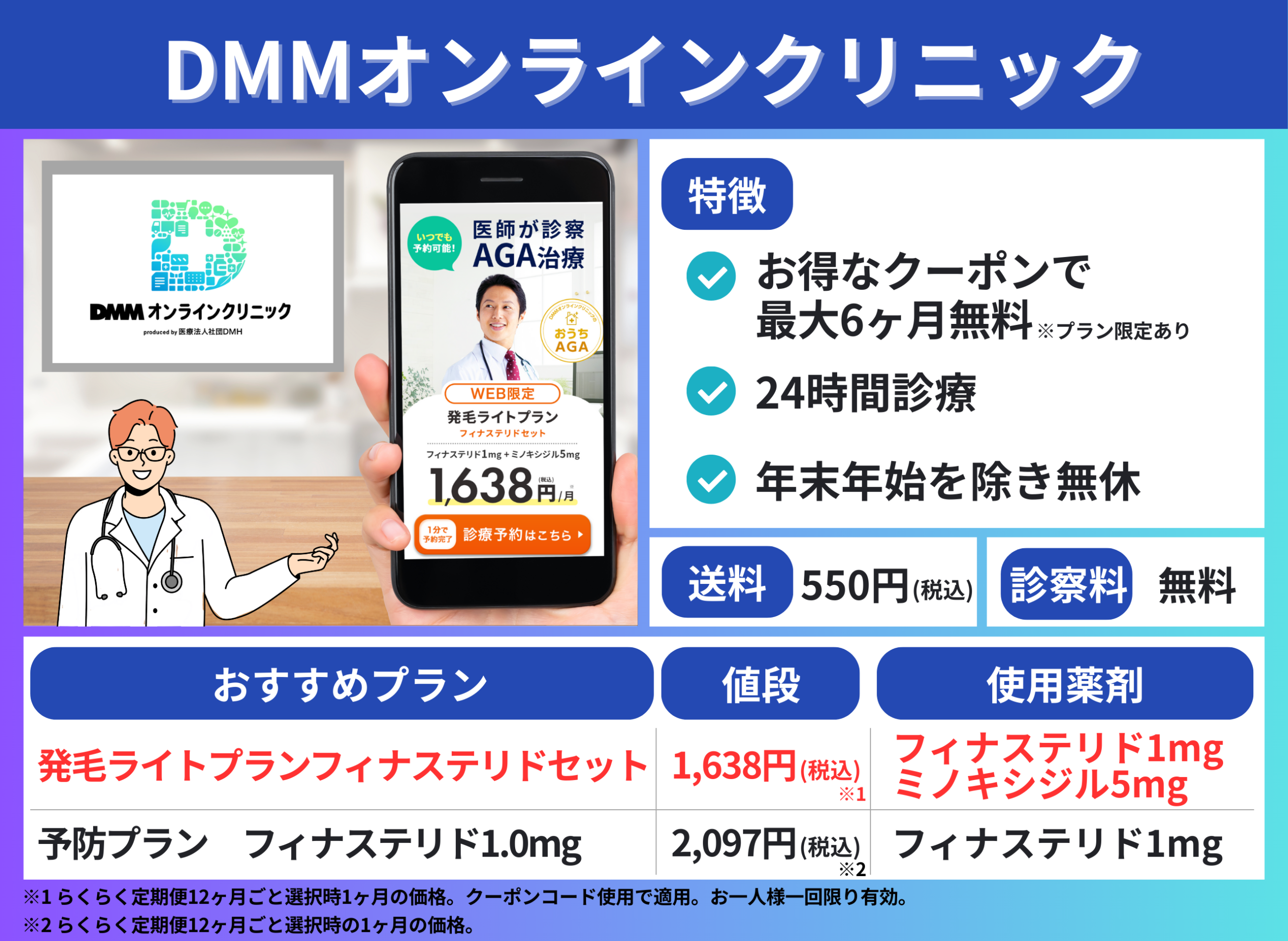 ※2診察料:発毛ライトプラン12ヶ月プランのお薬に適用