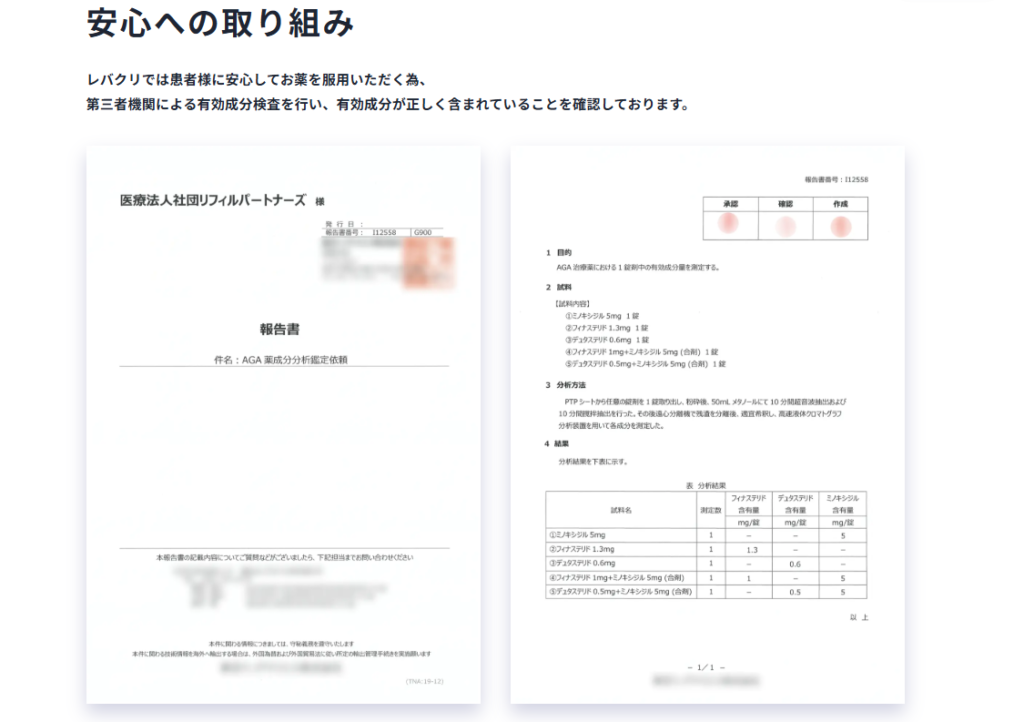 レバクリが信頼される理由の一つが、治療薬の成分を第三者機関で検査している点です。