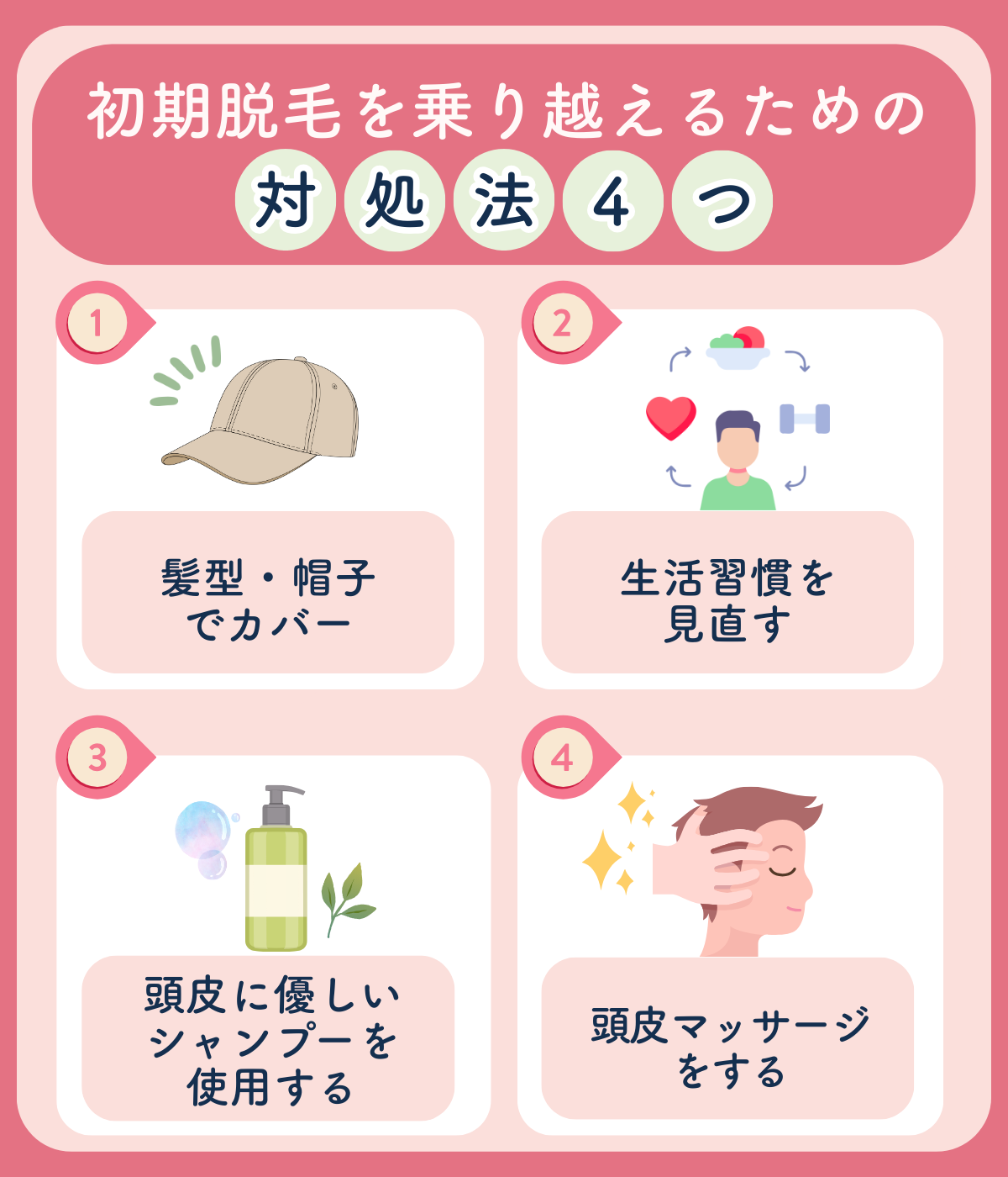 乗り切るコツは、見た目の対策と頭皮ケアを先に決めておいて、迷わず続けられるようにすることです。